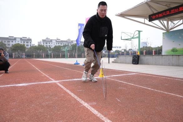 老师们个个拿出绝技为组争光,展现自己的青春风采。随着裁判的一声哨响,“滚铁环”项目进行了激烈的角逐。