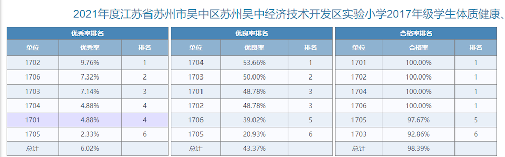 2021-2022学年体测成绩
